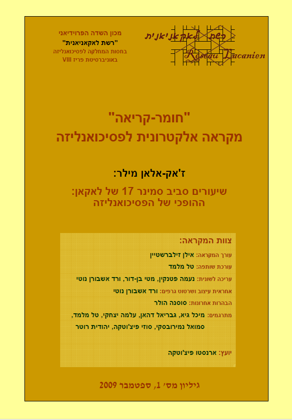 זאק-אלן מילר, שיעורים סביב סמינר 17 של לאקאן: ההופכי של הפסיכואנליזה, בתוך "חומר-קריאה: מקראה אלקטרונית פסיכואנליטית", הוצאת הרשת הלאקאניאנית